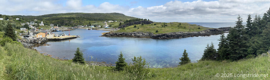 Wet, overgrown trail aside, we had nice scenery to start off the day. At least it was less overgrown than yesterday. Continuing south along the coast, we passed scenic coves as we worked our way towards the next town on the trail, Brigus South.